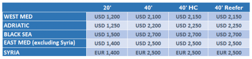 • All outports in Asia and the Mediterranean will be subject to additional surcharges