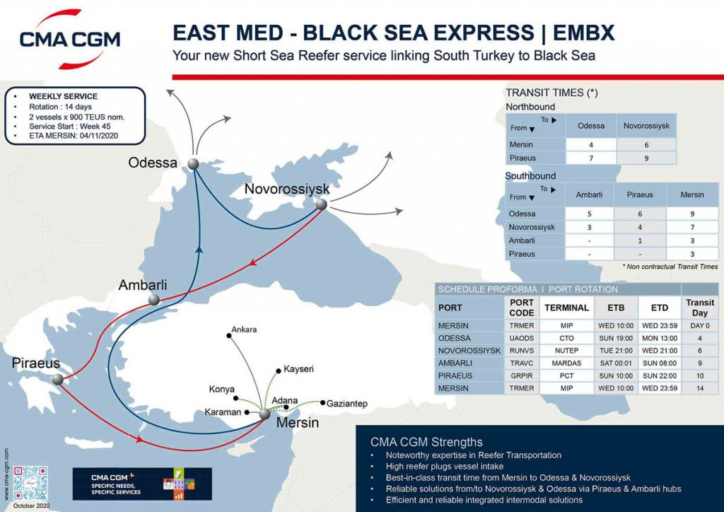 CMA CGM is pleased to announce the launch of a new Short Sea Weekly service between Southern Turkey and Black Sea.