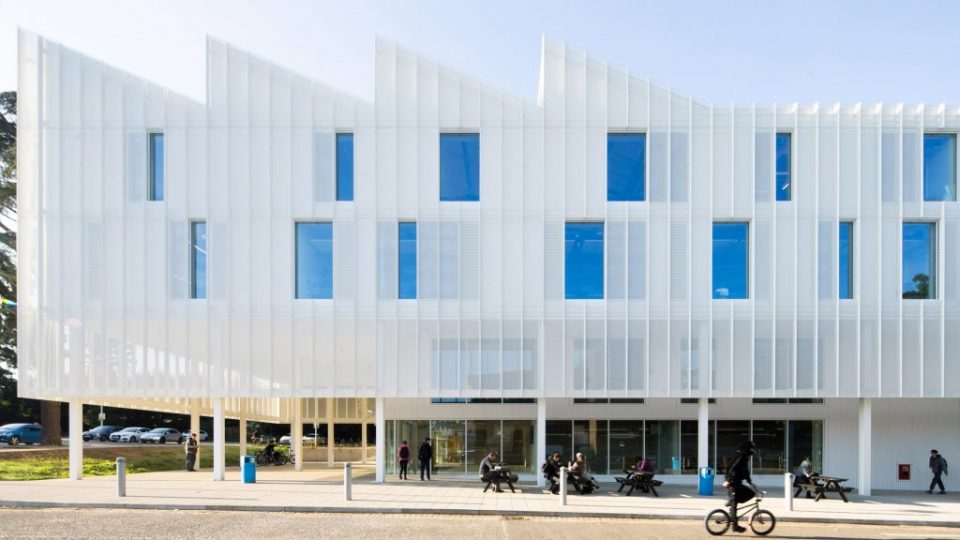 White panels made from perforated metal create a feeling of “light and airiness” at this digital-technology education centre, completed by London studio Coffey Architects for City College Norwich in Norfolk.
