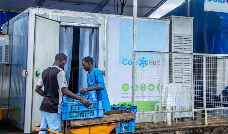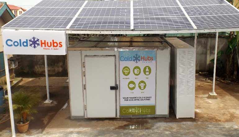 ColdHubs, is a plug and play, modular, solar-powered walk-in cold room, for 24/7 off-grid storage and preservation of perishable foods. They are installed in major markets and farms, with farmers paying a daily flat-fee for each crate of food they store.