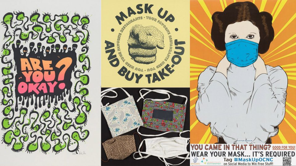 The collection features artwork created during the pandemic by local artists. The Orange County Arts Commission hired Carrboro artists for a social media campaign, #MaskUpOCNC, which urged Orange County residents to comply with state and county mask mandates. One of these posters features popular “Star Wars” character Princess Leia wearing a mask above the words “You came in that thing? Good for you!”