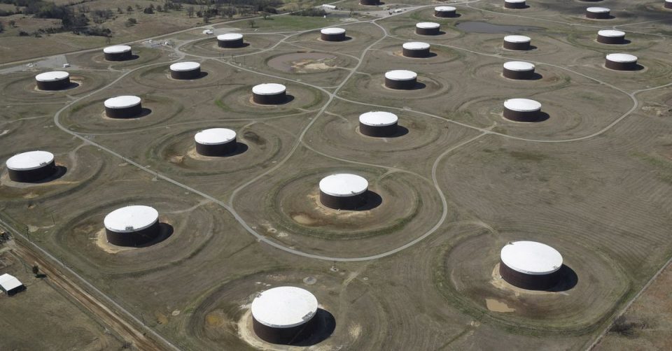 Crude oil storage tanks are seen from above at the Cushing oil hub, in Cushing, Oklahoma, March 24, 2016. Picture taken March 24, 2016. REUTERS/Nick Oxford//File Photo