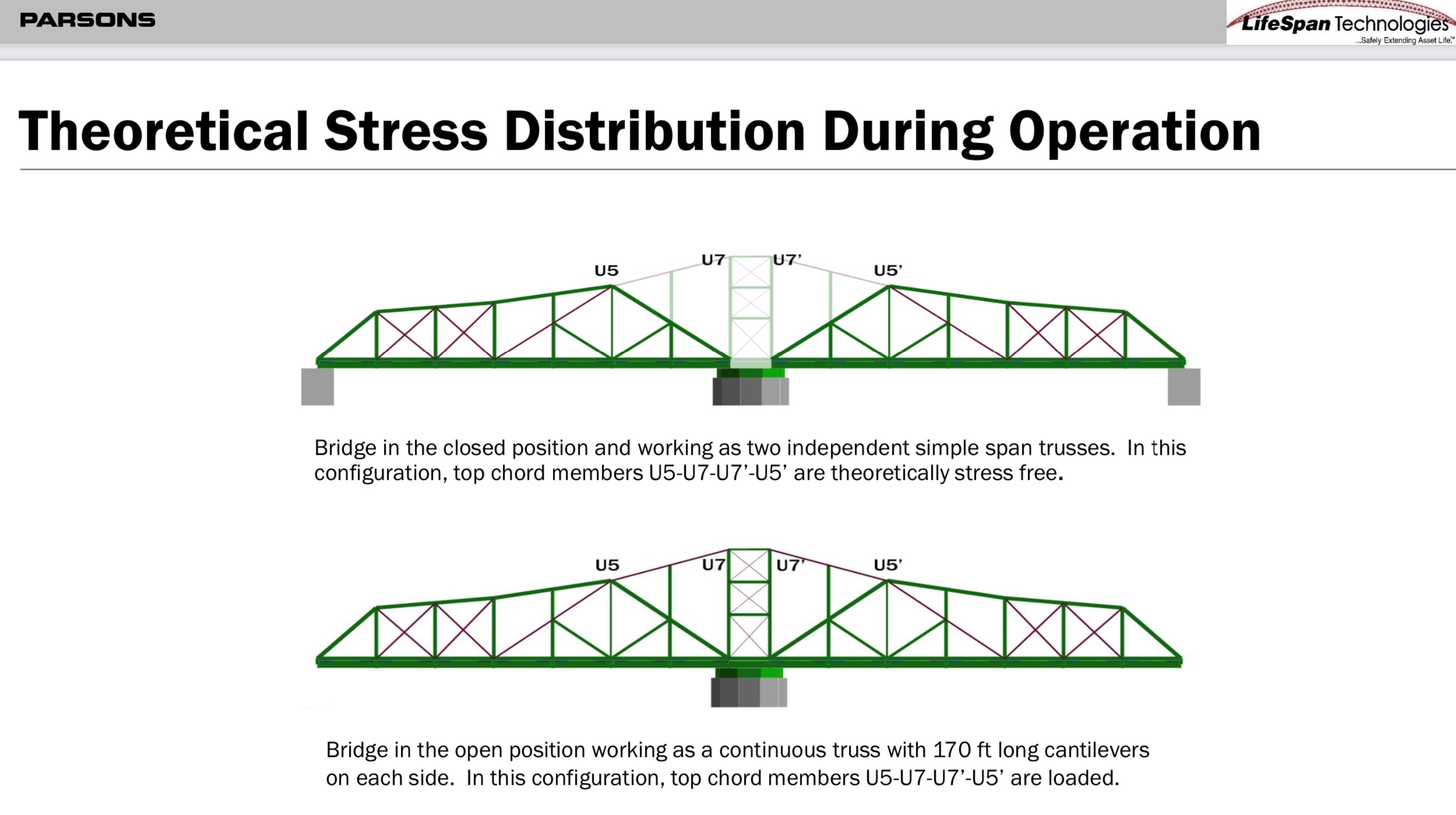 mostly “expected” deflection rates. - The swing span trusses were behaving as designed.