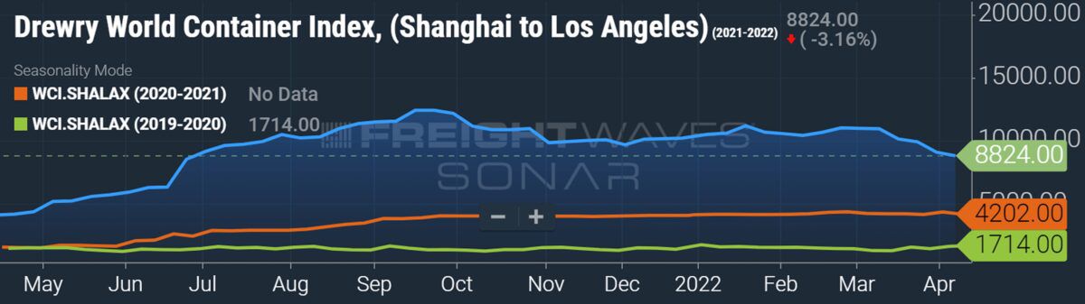 The Dow Jones Transportation Average has slumped 11% since late March on fears of waning domestic demand. Container shipping stocks have been dragged down along with domestic transports.