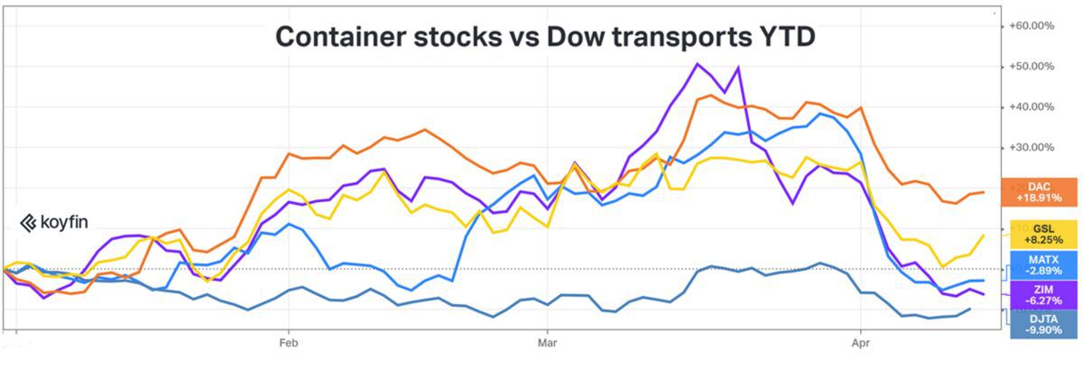 Unlike other ocean shipping segments, container stocks have fallen by double digits since the end of March.