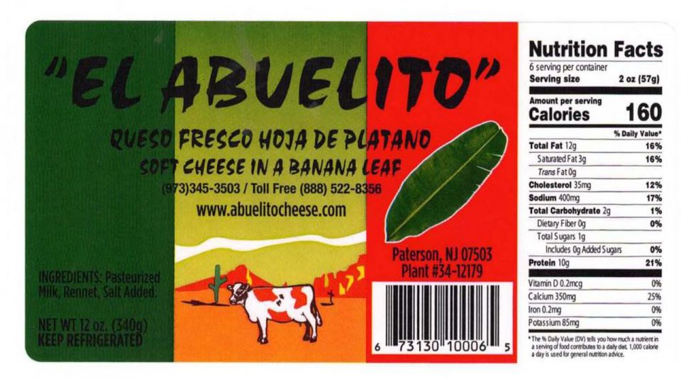 The products are sold as El Abuelito Cheese brand in Pennsylvania, Connecticut, New Jersey and New York.