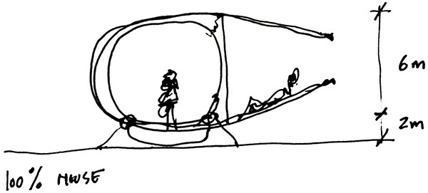 Gregg Lynn FORM, RV Prototype House, 2012, section sketch. Image © Greg Lynn FORM.