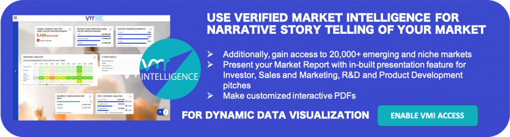 Verified Market Intelligence is a BI enabled database service with forecasted trends and accurate market insights on over 20,000+ tracked markets helping organizations globally with their market research needs. VMI provides a holistic overview and global competitive landscape with respect to Region, Country, Segment and Key players for emerging and niche markets.