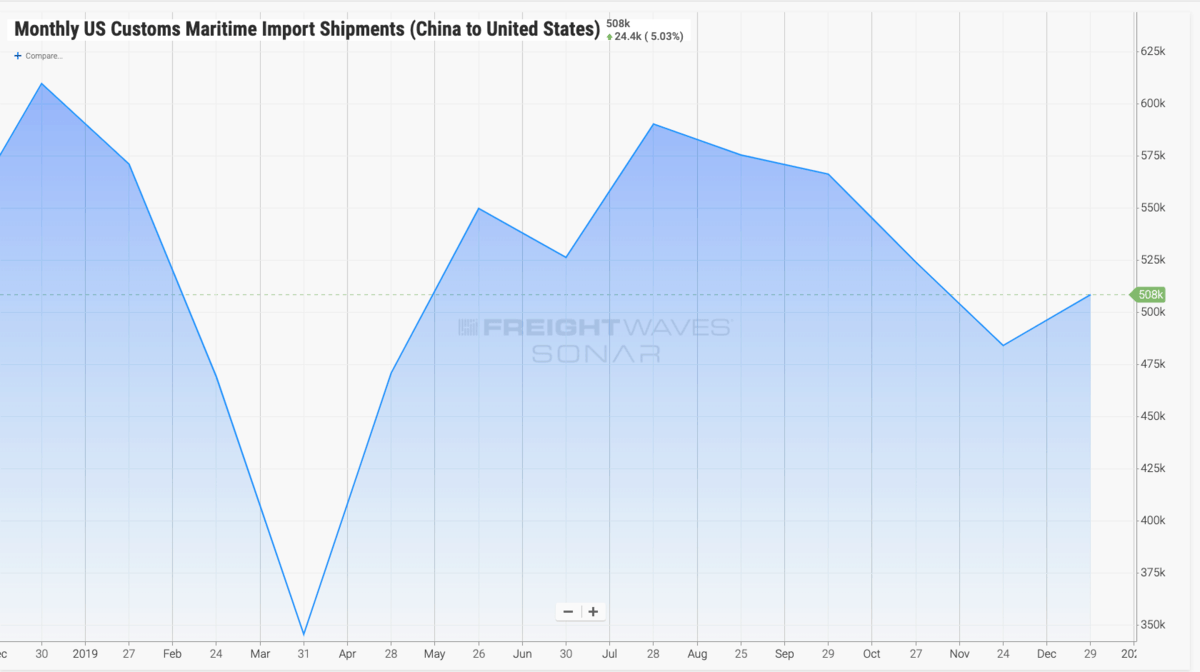During the 2019 Lunar New Year, monthly maritime import shipments from China fell from 609,000 at end of 2018 down to 345,000 by March (SONAR: MCSTM.CHNUSA). Monthly import shipments from China are already starting 2020 about 17% below what they were at the end of 2019.