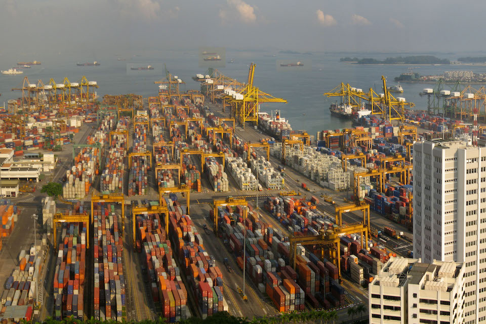 Featured image Port of Singapore (from a panorama by Kroisenbrunner – Wikicommons)