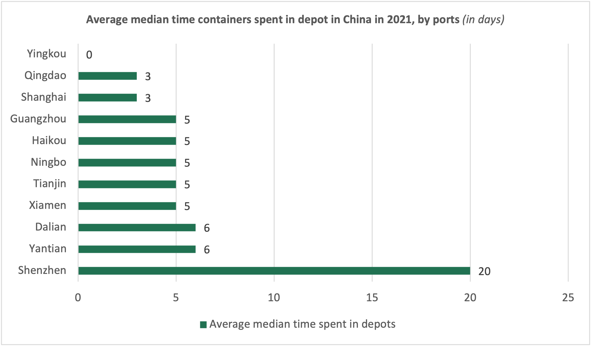 By contrast, severe congestion in many destination ports saw container dwell times at depots reach near-record levels in 2021.