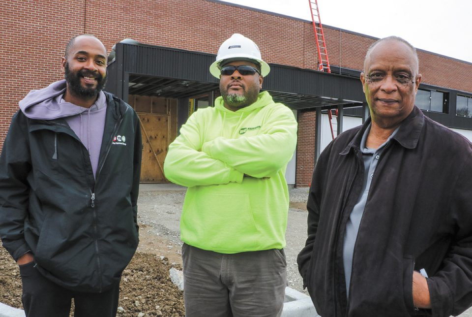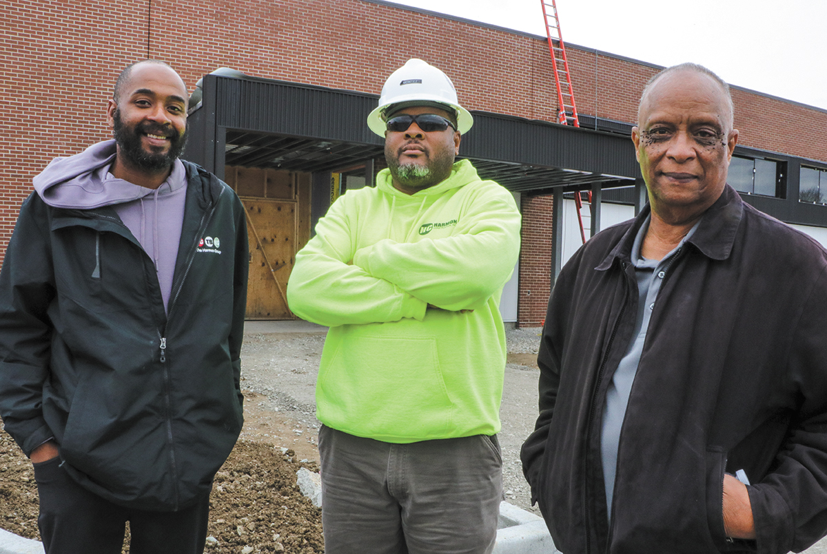 Harmon Construction—from left, co-owner William B. Harmon, project superintendent Montez Sutton and co-owner Thomas Harmon—is the project’s general contractor. (IBJ photos/Lesley Weidenbener)