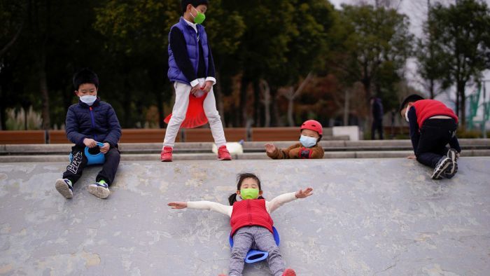 Children in Shanghai aren’t letting the coronavirus outbreak disrupt their playtime. (Reuters: Aly Song)