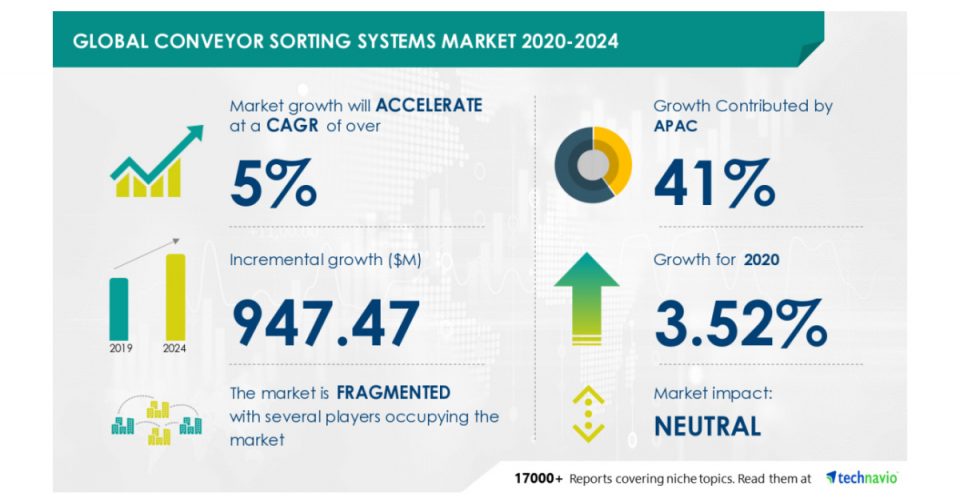 TECHNAVIO ESTIMATES THE GLOBAL CONVEYOR SORTING SYSTEMS MARKET TO GROW BY ALMOST $ 950 MILLION DURING 2020-2024 | APAC TO EMERGE AS KEY GROWTH REGION