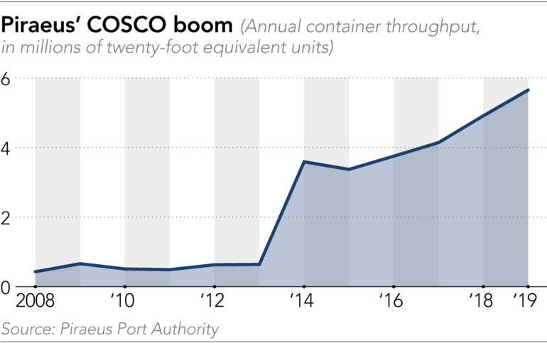 But rising disquiet in Greece and the wider EU over COSCO’s methods and strategies could hold back the group’s ambitions of taking Piraeus further up the ranks of Europe’s busiest ports from its fourth place finish in 2019.