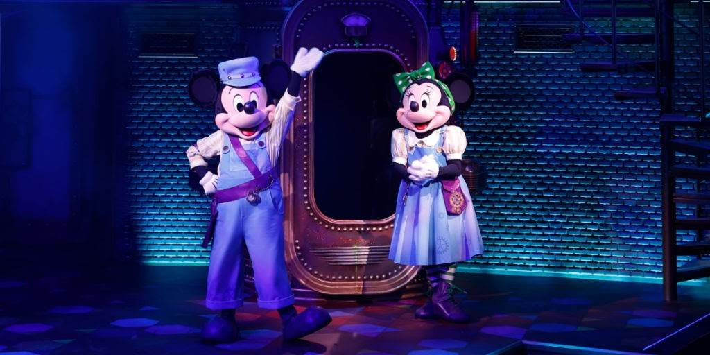 - Mickey and Minnie’s new costumes feature elements that blend into their surroundings, including gear accents and special keys that are an important part of the show.