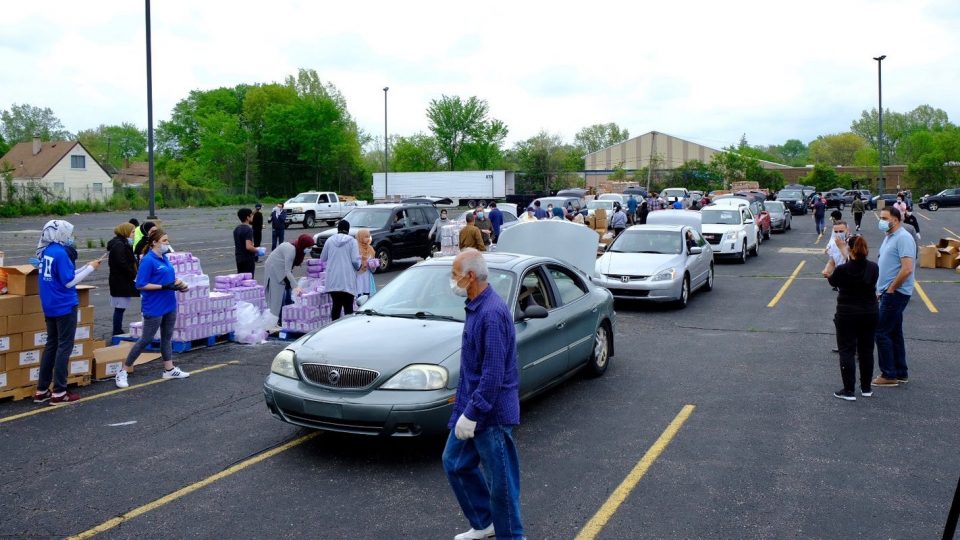 Hundreds waited in line with an open trunk Saturday when the Dearborn mosque kicked off a drive-thru food distribution. Fifty volunteers prepared more than 1,500 food kits to distribute to local families in need during the pandemic. Halal food and produce were donated from Meijer, Dearborn Police Department and 10 additional local supermarkets.
