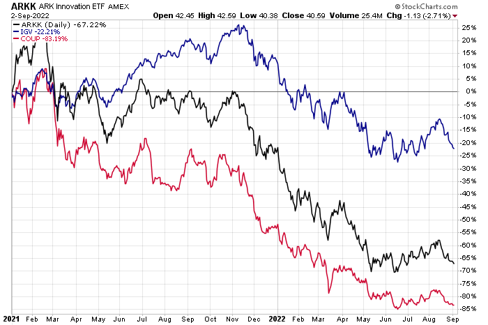 ARKK, IGV, COUP: Bears Reign Supreme In High-Growth Tech/Software
