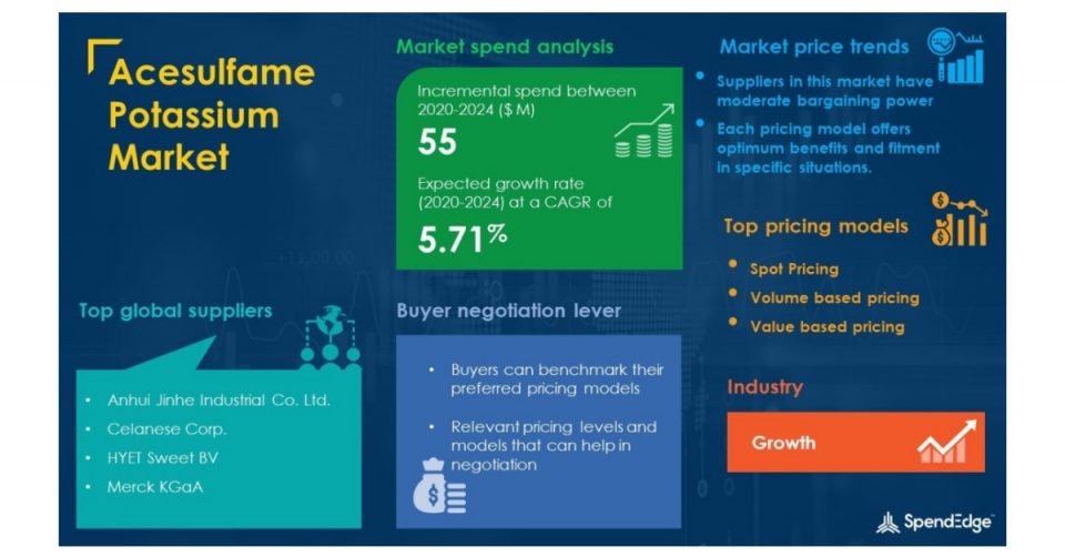 LONDON–(BUSINESS WIRE)–The Acesulfame Potassium Market is poised to experience spend growth of more than USD 55 million between 2020-2024 at a CAGR of over 5.71%. The report also provides the market impact and new opportunities created due to the COVID-19 pandemic. Request free sample pages