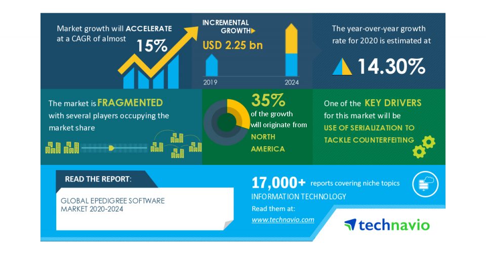 LONDON–(BUSINESS WIRE)–Technavio has been monitoring the e-pedigree software market and it is poised to grow by USD 2.25 billion during 2020-2024, progressing at a CAGR of almost 15% during the forecast period. The report offers an up-to-date analysis regarding the current market scenario, latest trends and drivers, and the overall market environment.