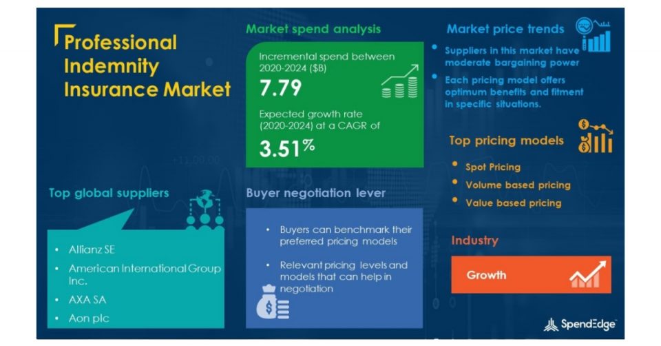 LONDON–(BUSINESS WIRE)–The Professional Indemnity Insurance Market is poised to experience spend growth of more than USD 7.79 billion between 2020-2024 at a CAGR of over 3.51%. The report also provides the market impact and new opportunities created due to the COVID-19 pandemic. Request free sample pages