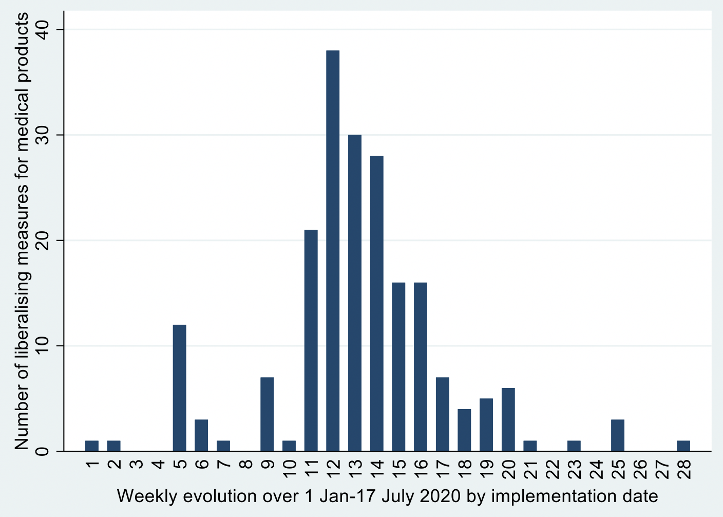 Figure 1 Trade measures for medical products, January-July 2020 (weekly)