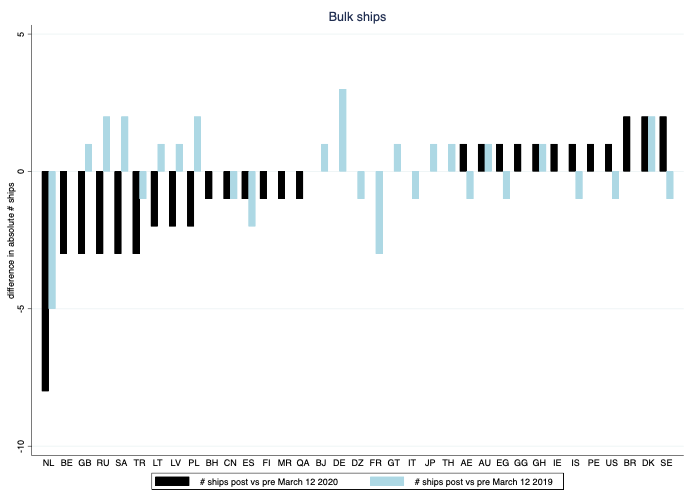 Figure 2 Change in departures of bulk ships post vs pre COVID-19 restrictions