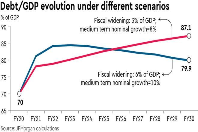 Thus far, the “fiscal space” debate in India has centred exclusively on this year’s deficit and how it will be financed. How much will the deficit go up? How much can it go up? Who will absorb the extra issuance? But, a more holistic assessment of fiscal space—and one that ratings agencies and foreign investors will eventually focus on—is the government’s intertemporal budget constraint and how India’s Debt/GDP evolves in the coming years. How much will India’s Debt/GDP jump up this year? More importantly, what happens thereafter? Will Debt/GDP keep rising year after year? Or will it start declining? As research has found, it is typically the trajectory of Debt/GDP—more than the level—that impacts future growth.