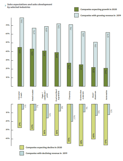 Some 38% expect a decline in turnover, against 10% last year, and nearly half of the chemicals, construction and automotive industries (45%, 48% and 47% respectively) are expecting declines this year.