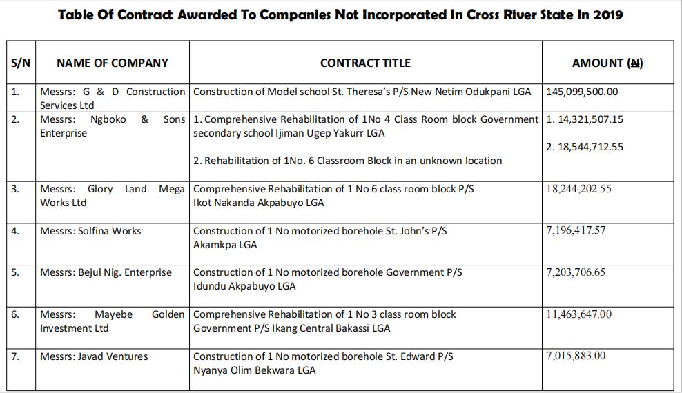 The other 39 contracts, our investigations show, were awarded to 31 different companies in manners that question the procedural and due diligence requirements as entrenched in the Cross River State Procurement Law, 2020 (Law No. 9).