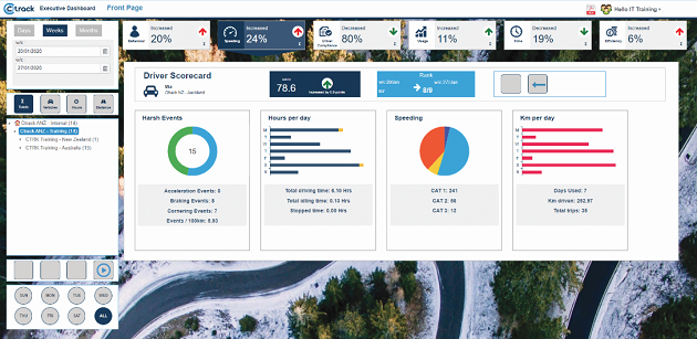 “The Executive Dashboard caters for different metrics across any fleet type or size,” he says. “Drop downs on side displays can help the user drill down on fleet information and isolate the sequence of events that contribute to driver scores.”