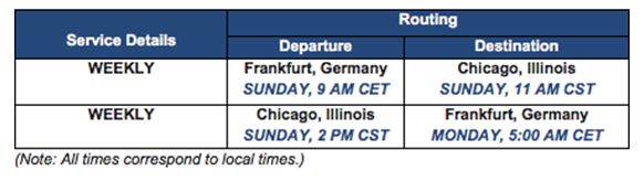 The service, which commenced on July 26, operates on rotation between Chicago, US, and Frankfurt, Germany.