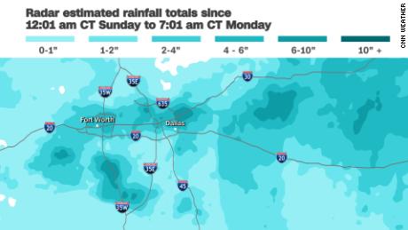 Parts of Dallas got an entire summer’s worth of rain between Sunday afternoon and Monday afternoon, according to the NWS. That rate is only expected once in 100 years, on average. Dallas also got over 3 inches of rain in just one hour overnight — a roughly a 1-in-50-year rainfall rate, according to National Oceanic and Atmospheric Administration estimates.