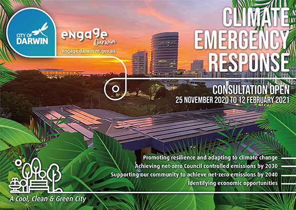 City of Darwin’s Draft Climate Emergency Response and Strategy, which provides a roadmap for how Council plans to address climate change, is now open for stakeholder and community consultation.