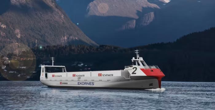 The new autonomous, electric, container ship is intended for shorter distances and is being developed using Naval Dynamics’ NDS AutoBarge 250 concept, which was created in collaboration with Kongsberg and Massterly. The vessel will run between Ekornes’ port at Ikornnes in Sykkylven, to the port of Ålesund, which is the shipping center. The freight route is 23 nautical miles.