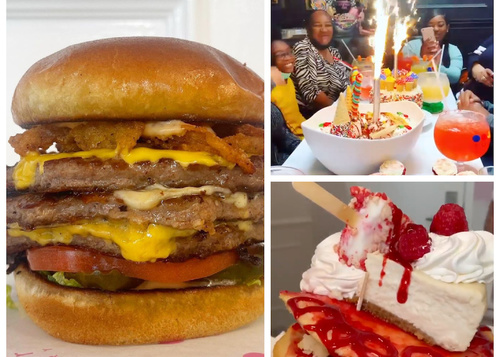 In non-dessert offerings, the restaurant serves steak frites, pan-roasted salmon, chicken and waffles, pasta, salad, sandwiches, monster burgers (including one for vegetarians), and buttermilk onion rings.