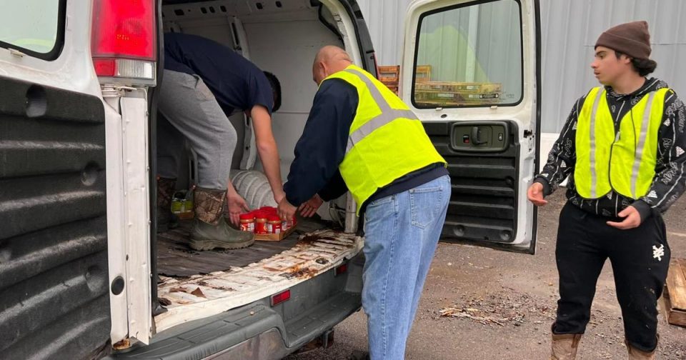 Janet Beal, Lifehouse Cedar Canyon food bank director, loaded canned goods and peanut butter with Rob Thielke.