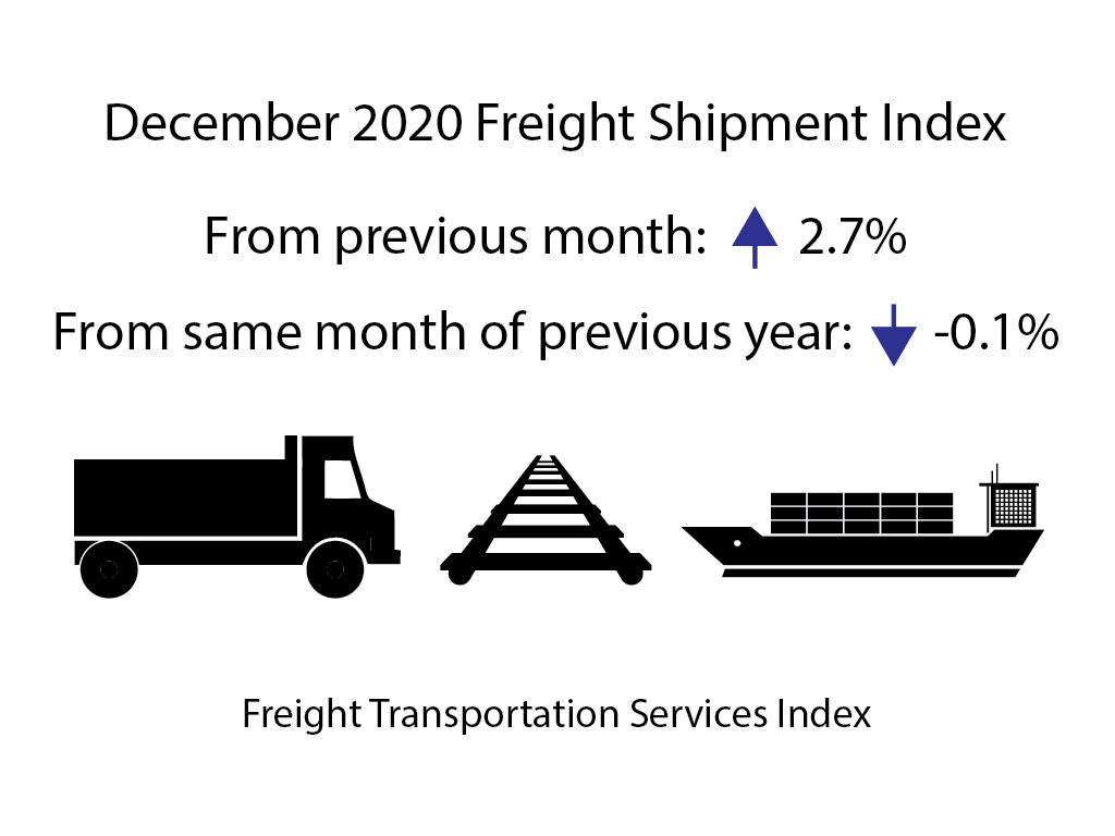 In the fourth quarter of 2020, the freight TSI rose 3.3%, the second consecutive quarterly increase and the largest quarterly rise since the fourth quarter of 2017