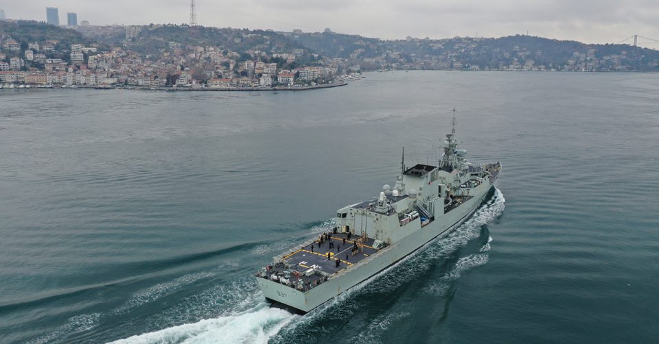 Photo: The Halifax-class navy frigate HMCS Fredericton in the waters of Istanbul Strait, Turkey. Shutterstock.com, by Arkeonaval.