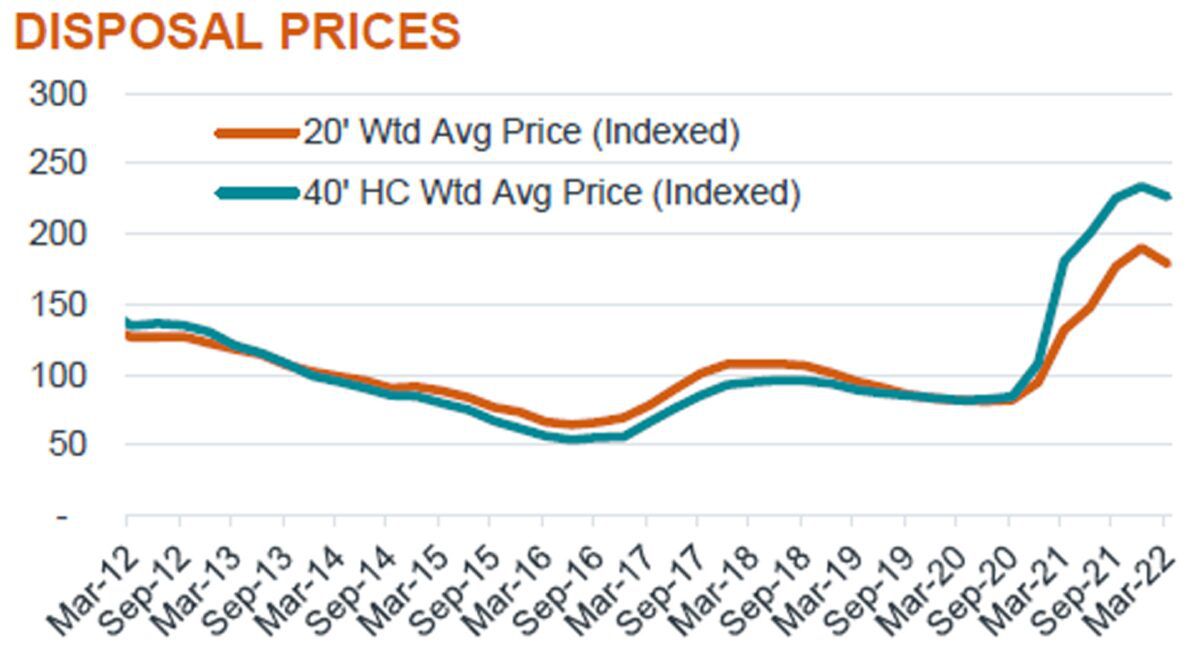 Another key indicator is the sale price of old containers that come off leases and are disposed of in the secondary market (for use as storage, etc.).