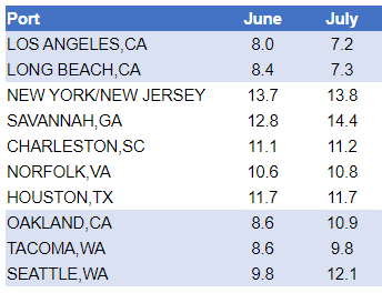Figure 2: Average Wait Times (in days) at Top 10 U.S. Ports