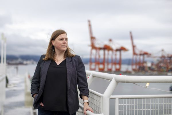 Kendra Johnston, President of the Association for Mineral Exploration BC, at Vancouver’s Canada Place overlooking the Port of Vancouver on Dec. 1.Alia Youssef/The Globe and Mail