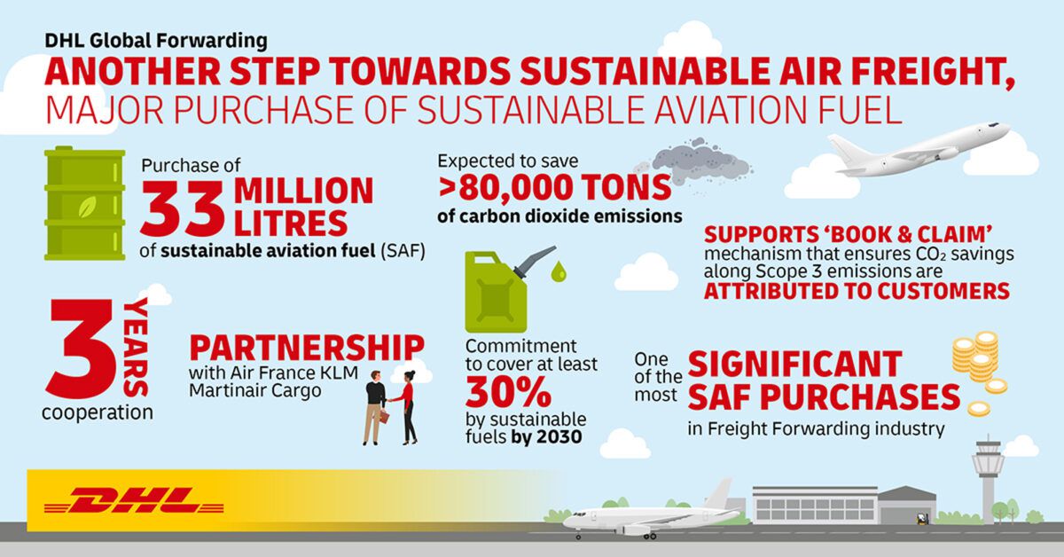 DHL called the deal one of the “most significant” purchases of SAF in freight forwarding. This purchase of SAF from AFKLMP is part of DHL’s sustainability goals, which aim to reduce all logistics-related emissions to zero by 2050 by investing $8.25 billion in green technologies by 2030.