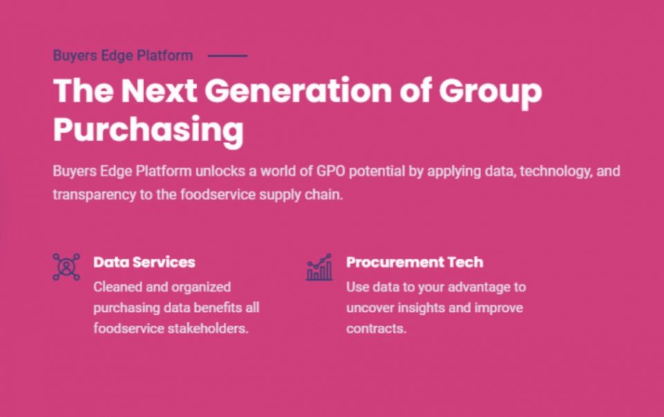 Buyers Edge Platform is a digital procurement network made up of tech-enabled GPOs, Saas companies and supply chain consultants that creates unparalleled efficiency and new value in the foodservice channel.