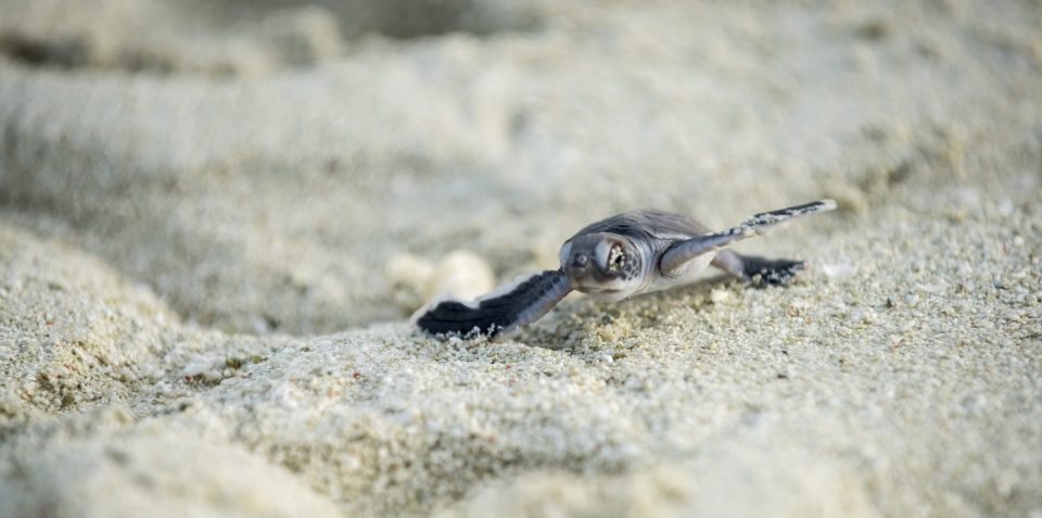 A turtle hatchling on Heron Island, Australia. A local council in Queensland is trialing new measures to stop hatchlings becoming disoriented by artificial lights.