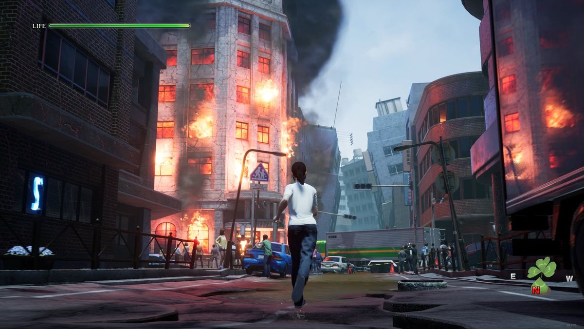 Disaster Report 4, revived by a new company called Granzella that was founded by ex-Irem employees, is entirely within that tradition. It doesn’t for a second hold up as a modern big-budget game, but that might not stop you from falling for its quirky charms. The game begins with your created character riding a bus — your purpose for doing so is up to you, chosen by one of many multianswer questions — before an earthquake strikes and the city is thrown into chaos. Thus begins Disaster Report’s offbeat loop of exploration, survival, and chatting to random strangers.