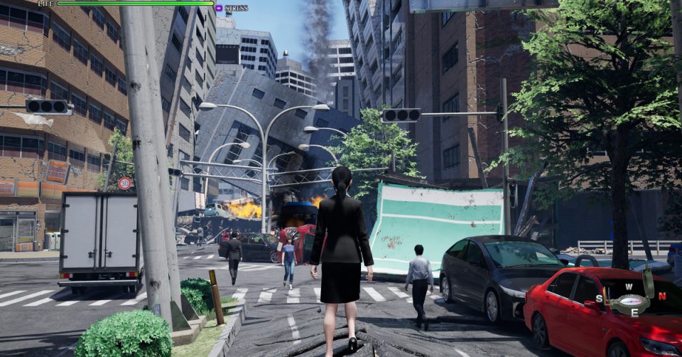 Disaster Report 4, revived by a new company called Granzella that was founded by ex-Irem employees, is entirely within that tradition. It doesn’t for a second hold up as a modern big-budget game, but that might not stop you from falling for its quirky charms. The game begins with your created character riding a bus — your purpose for doing so is up to you, chosen by one of many multianswer questions — before an earthquake strikes and the city is thrown into chaos. Thus begins Disaster Report’s offbeat loop of exploration, survival, and chatting to random strangers.