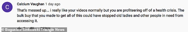 Another added: ‘That’s messed up… I really like your videos normally but you are profiteering off of a health crisis.
