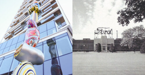 Coupland notes the appearance of colourful stacked gems is an explicit nod to Station Square’s historic past of being the site of a car manufacturing factory for the Ford Motor Company.