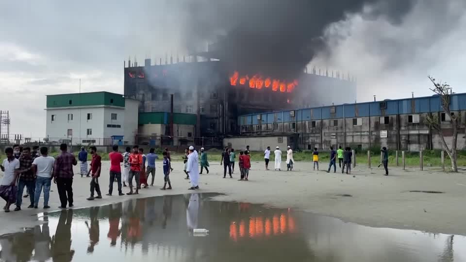 The fire started late Thursday on the ground floor of a six-story factory building in Narayanganj, southeast of Dhaka, and was still raging Friday evening as firefighters scrambled to control it.